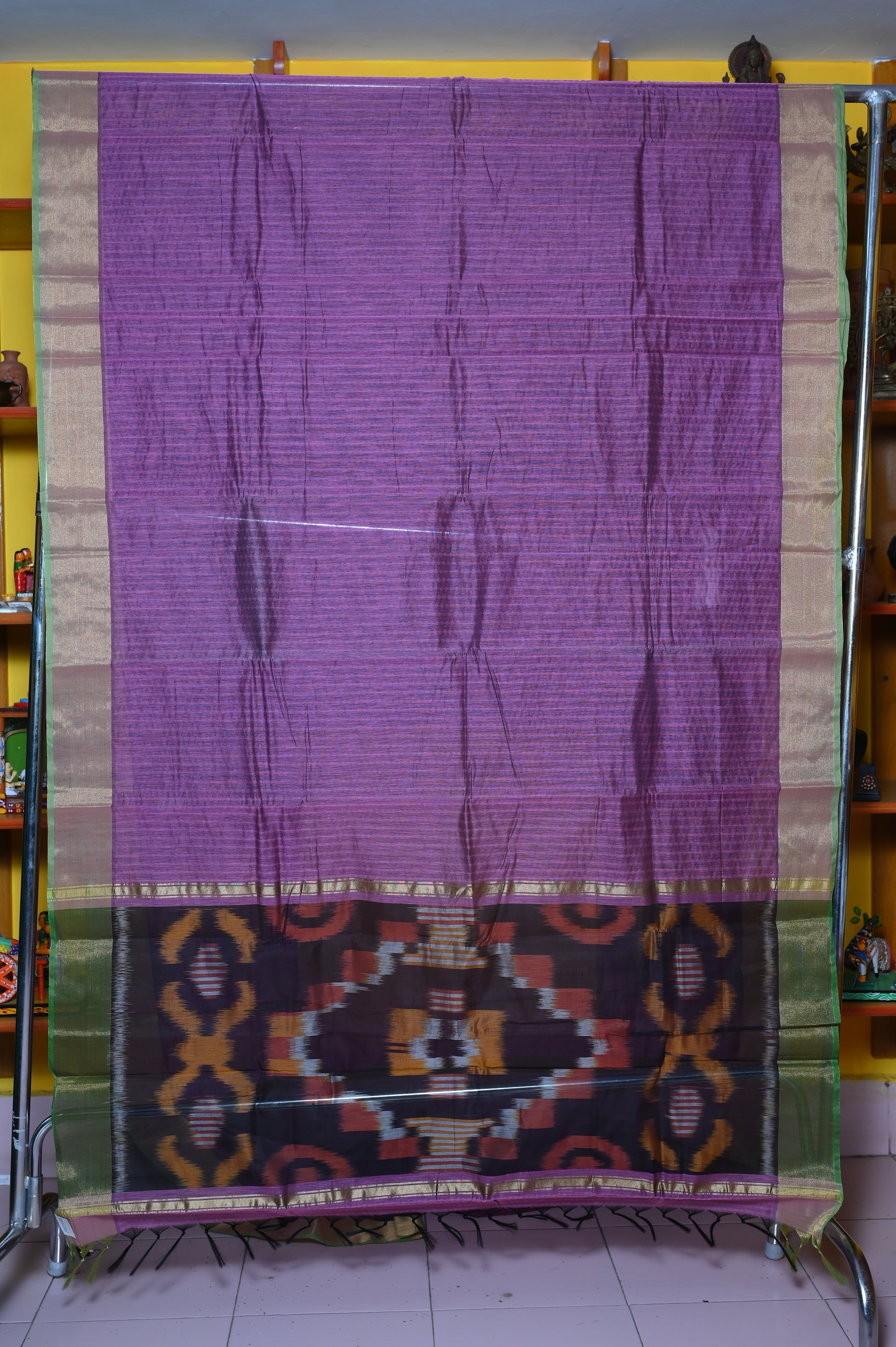 Crafted from breathable cotton, this sari features a traditional Pochampalli pallu that showcases exquisite handwoven patterns. Perfect for warm climates, it offers comfort while highlighting heritage artistry, making it an elegant choice for both casual and festive occasions. The intricate design adds a refined touch, reflecting expert craftsmanship and timeless appeal.